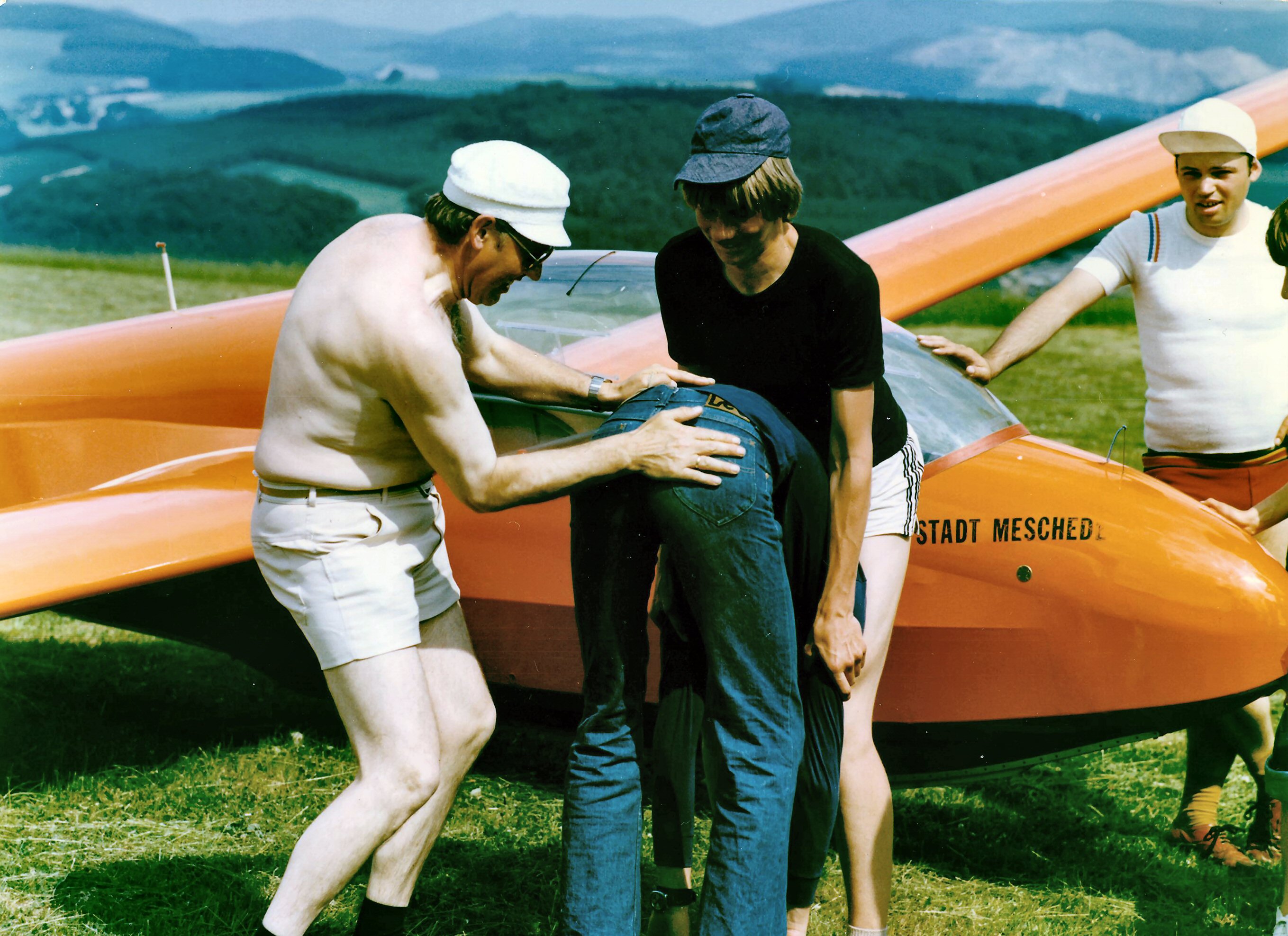 Am Start 1970 Besprechung 1970 ScanImage001 Die Jugendgruppe 1971 Jugendgruppe 1971 Frühstück im Thermiksaloon Besuch des Fliegenden Musketier 1971 ist der Tower fertiggestellt Werkstattarbeit 72-73 Flugtag72 Lehrgang 1977 Flugzeugtaufe durch Pastor Gerpheide Alte Halle mit Kapelle und Kirchturm Luftaufnahme mit alter Halle Pudding für alle Ein neuer stolzer A-Pilot Da wird das Fluggefühl "eingebläut" Warten auf den Start Gleich geht's los Die gute Ka8  D-5466 Meschede und Hennesee Schleppzug bereit Robin DR400 Remorqueur mit Ka13 Überlandwetter 1989 Überland mit LS4 (1989) Kann losgehen Job 15 treues Arbeitsgerät über viele Jahrzehnte